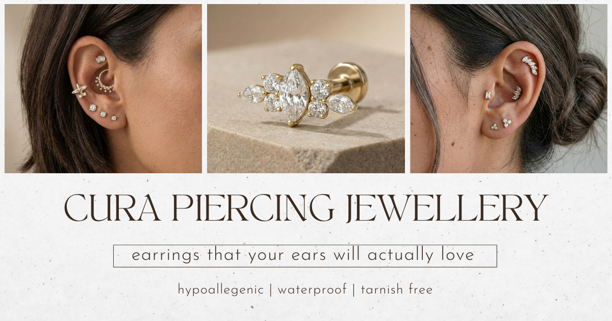 Cura was created by someone who knows the struggle. After trying “affordable hypoallergenic” jewellery that left her ears red, itchy, and sore, our founder set out to make something better.
