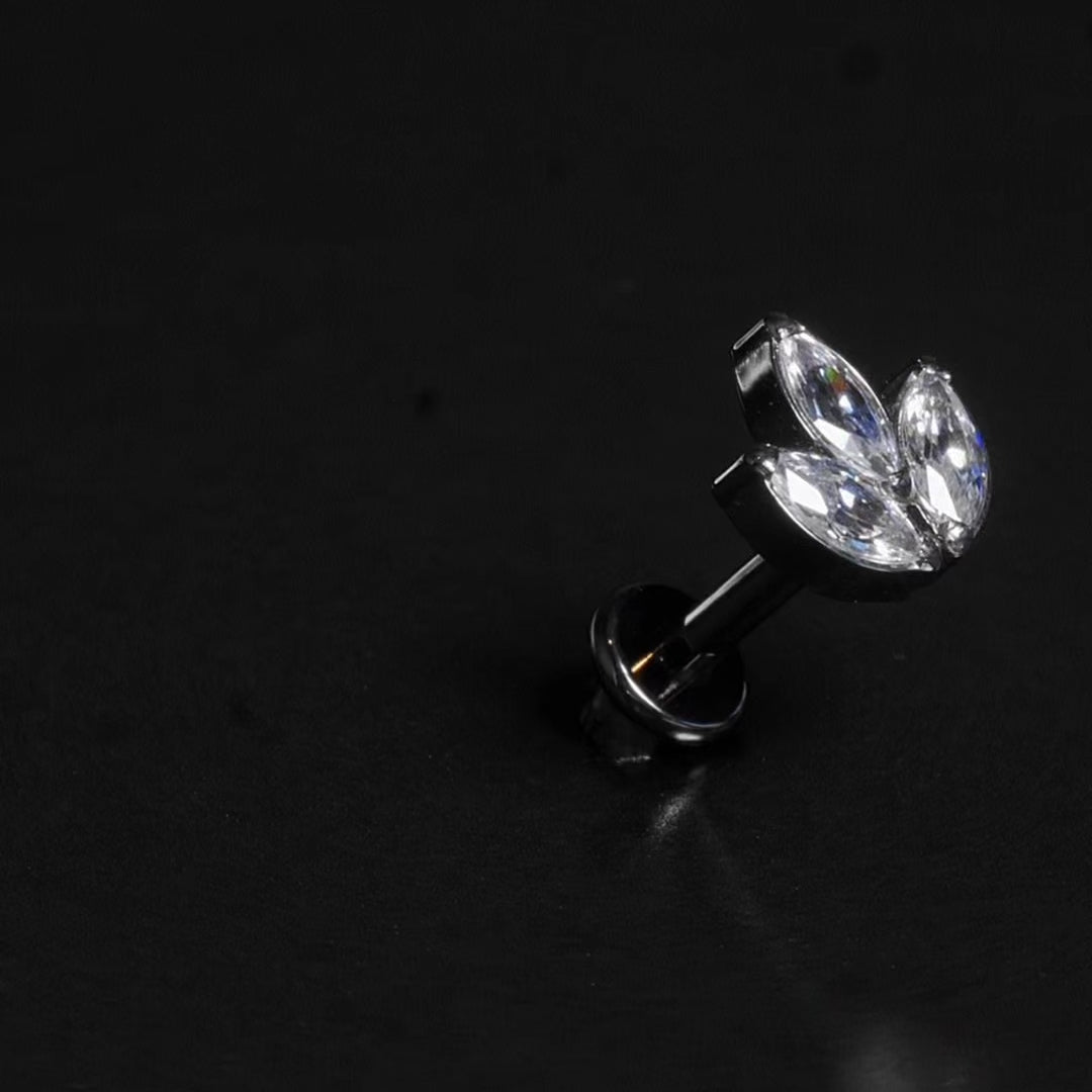 Exquisite 3 Leaf Marquise Stud from Cura Piercing Jewellery, a masterpiece crafted to elevate your style quotient. This stunning piece, meticulously designed with precision, embodies sophistication and grace, setting new standards for elegance in body jewellery.