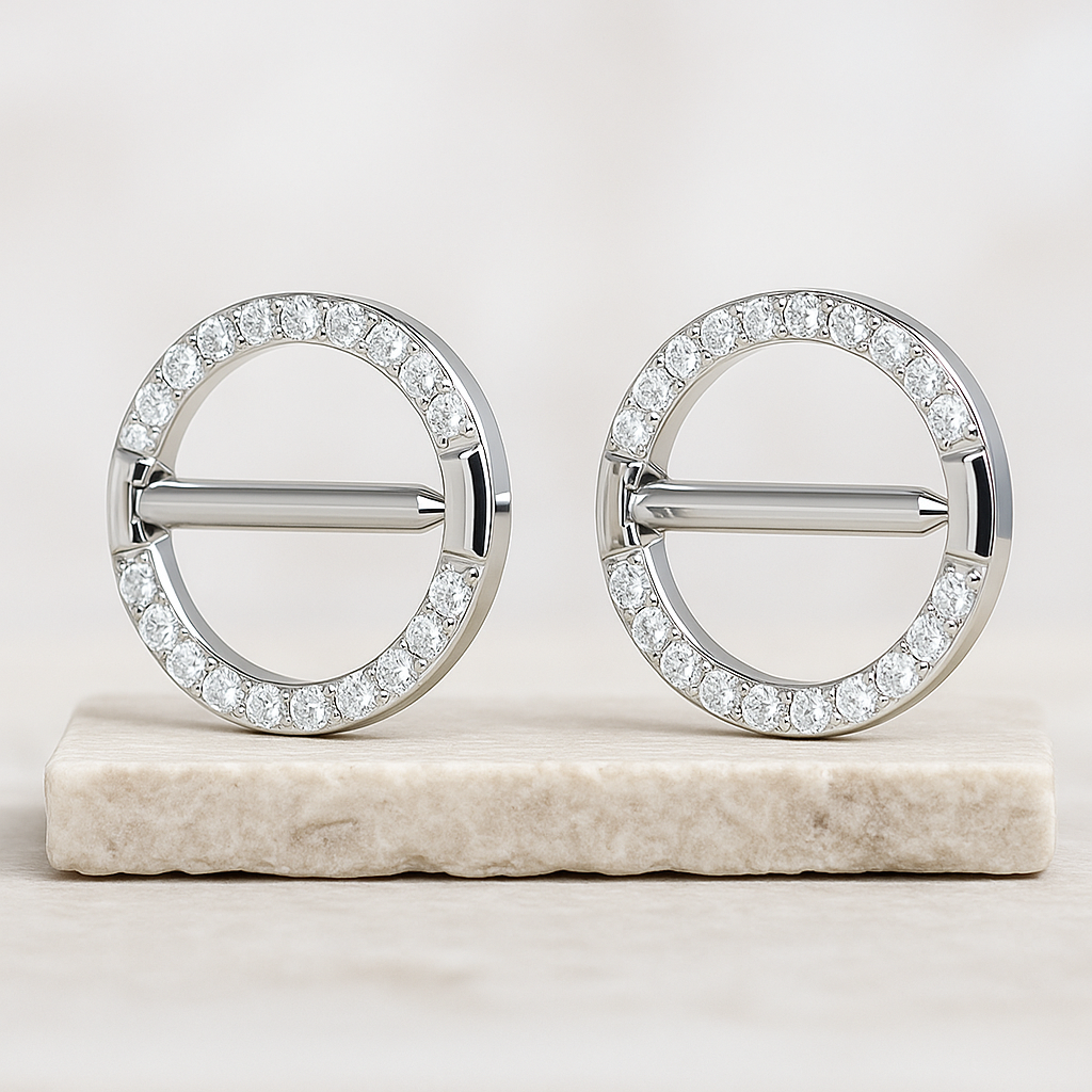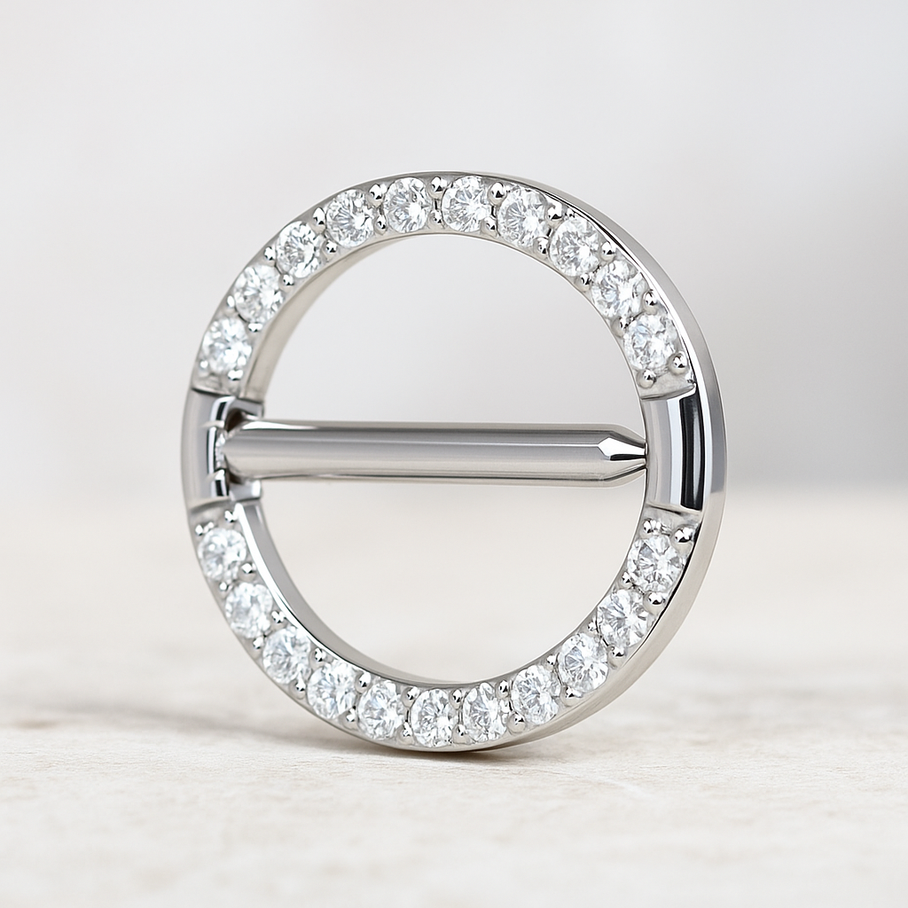 Indulge in the refined elegance of the Nia Jewelled Nipple Shield from Cura Piercing Jewellery. Meticulously crafted, this nipple shield is a testament to both artistry and quality, allowing you to showcase your unique style with grace.