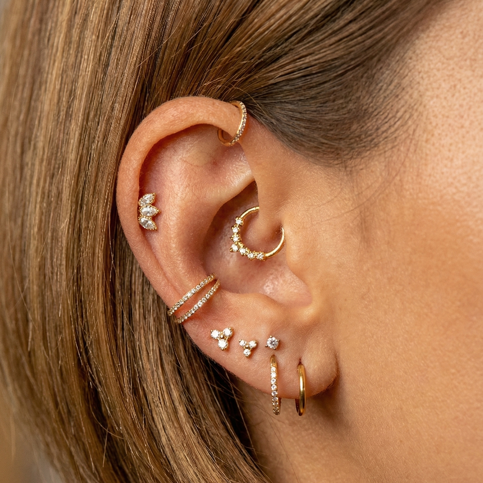 Please ensure that you have chosen the right size earrings for your piercing and that your piercing is suitable for a 16G/1,2mm gauge (standard size of cartilage piercings done by a professional piercer) before your purchase as we cannot exchange or refund earrings that do not fit your piercing.