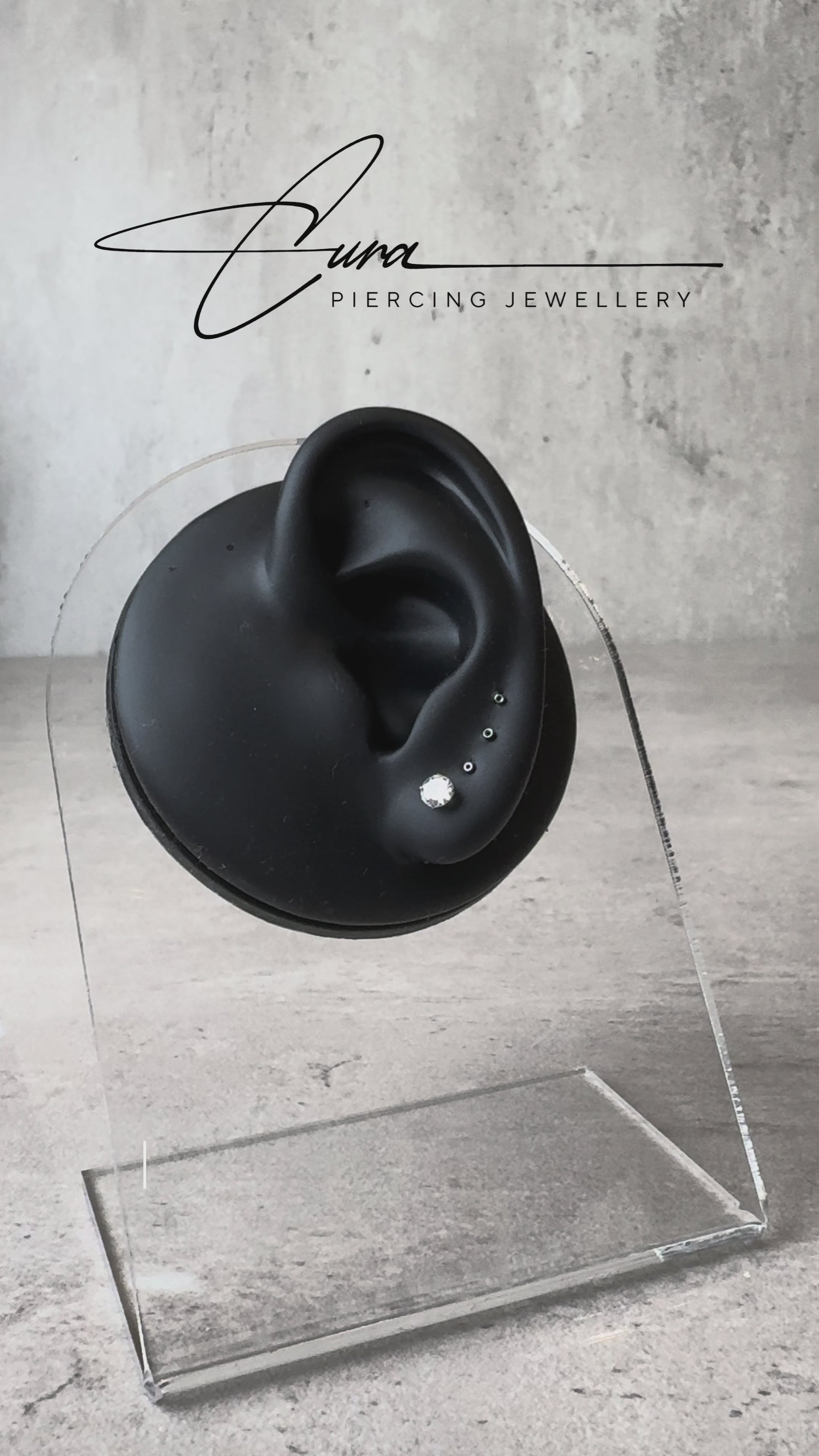 Disclaimer: Cura Jewellery ONLY fits piercings done with a 16G needle (standard size of piercings done at professional piercing studios), and will NOT fit piercings done with a gun.