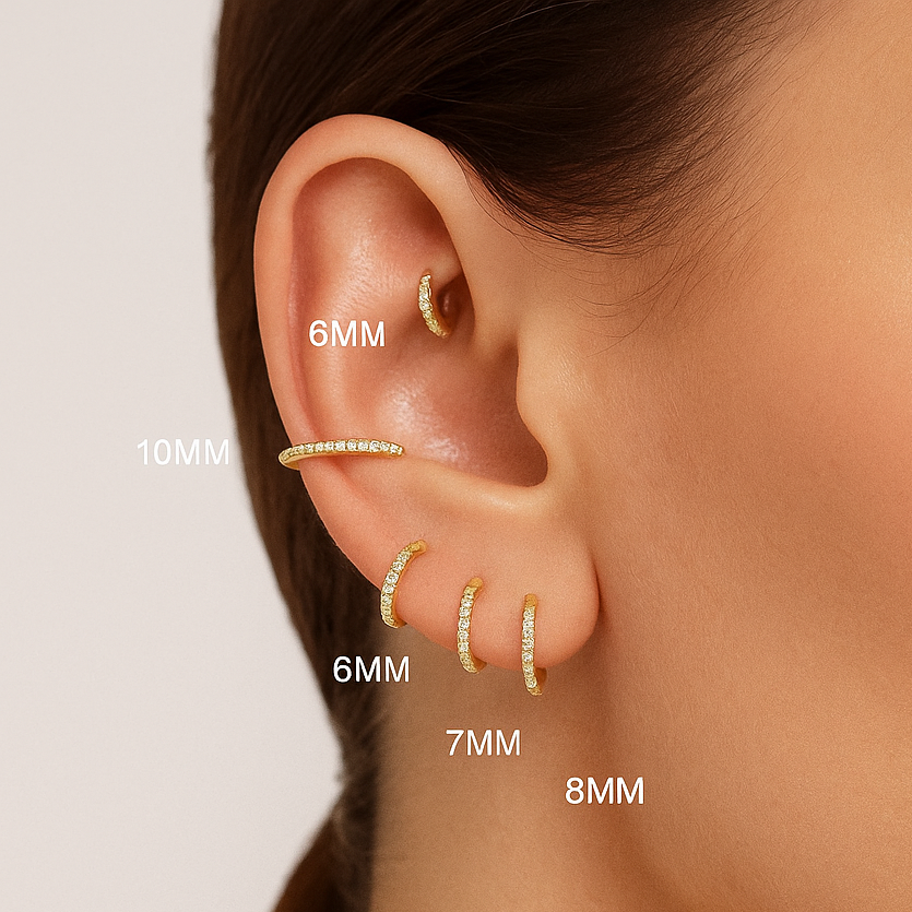 Consult our size guide below as a reference for standard segment ring sizes for different cartilage piercings.